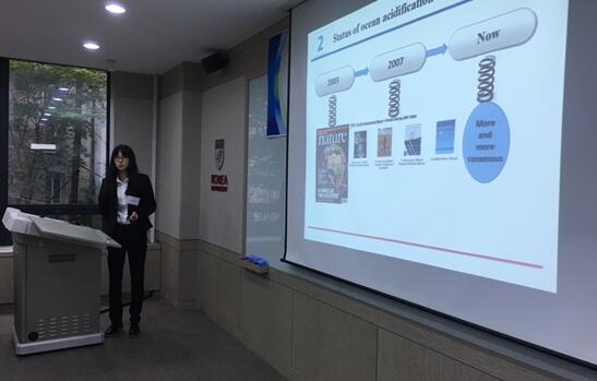 Lee 首先介绍了黄海目前所面临的过度捕捞、栖息地丧失等所导致的生态系统变化的严峻问题。强调了国际组织和政府合作的重要性,她表示,合作是获得信息、找到问题解决方法的有效途径。同时,她强调了国际教育合作的重要性,她认为,黄海环境问题的解决可能需要几代人的共同努力,而加强国际教育合作是今后全面合作的根本。